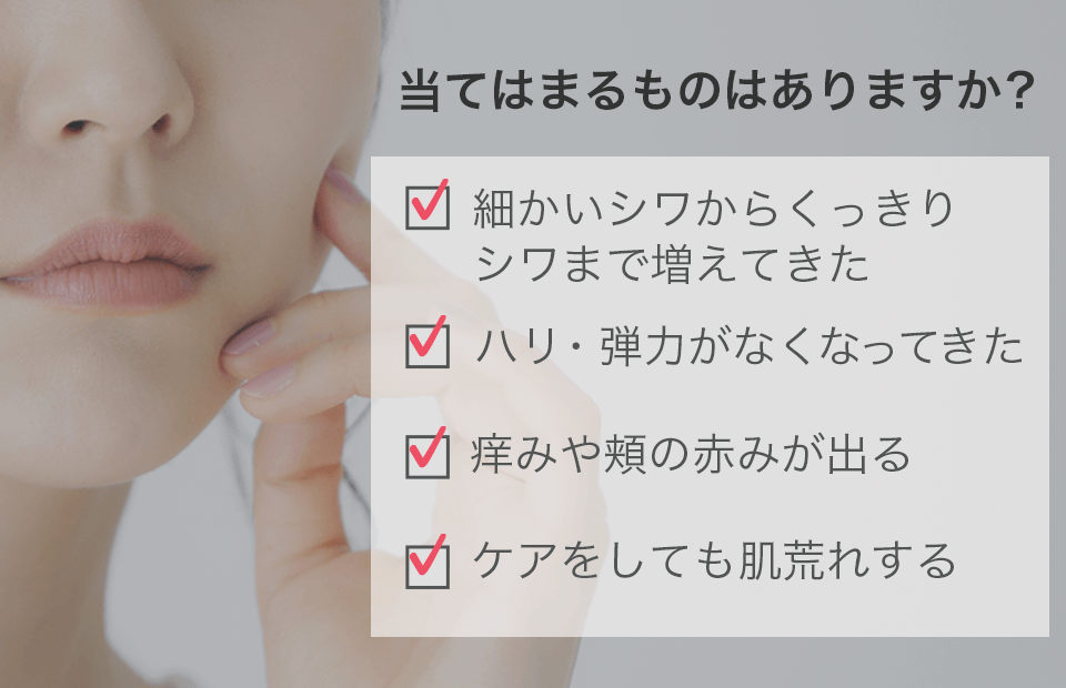 シワ・肌荒れ・うるおい不足などの