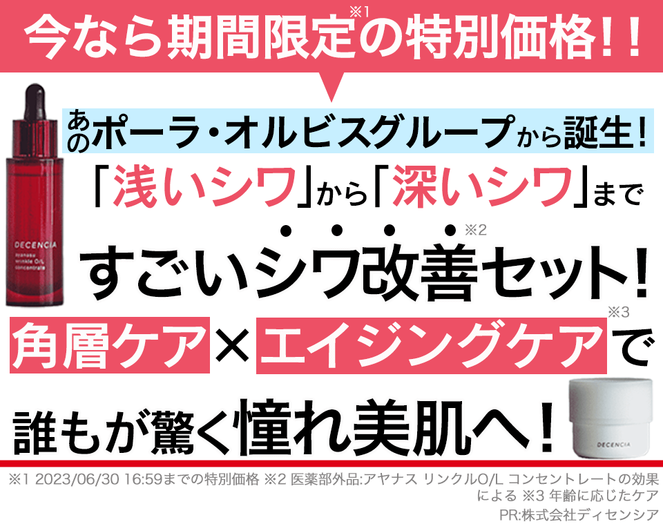 *2 医薬部外品:アヤナスリンクルO/L コンセントレートの効果による *6 2023/06/30 16:59までの特別価格