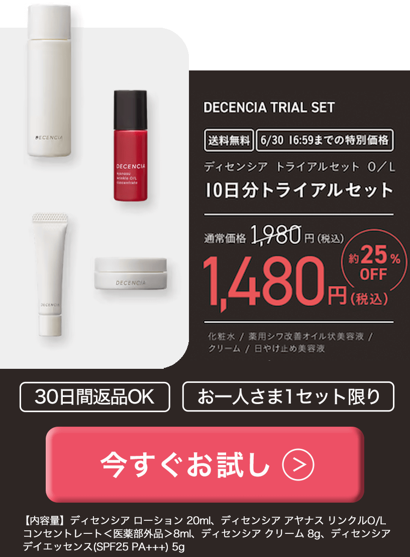 敏感肌だから効果のあるようなしっかりとしたエイジングケア*1はできないと思っていましたが、これは敏感肌にも使えてしかもシワにも効果的*2なのが本当に嬉しい!!今年出会ってよかったスキンケアです。