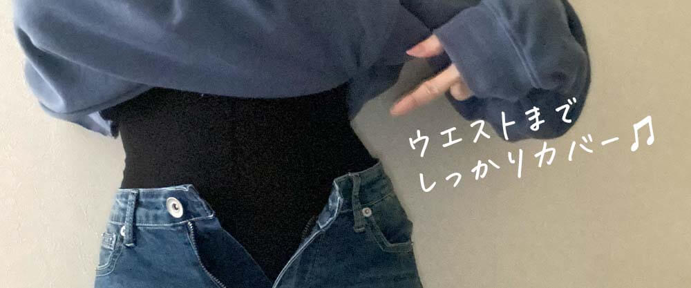 お腹の上までしっかりカバーしてくれるから、お腹のお肉に負けてウエストがくるくるっとなることもありません🤣
